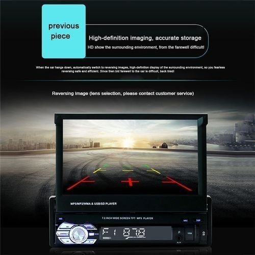 Product detailsPower supply voltage: DC12V, (24V transformer to be added);Bluetooth phone support Bluetooth music playerSupport reverse video input, reversing the priority (camera optional)Support LRC lyrics and ID3 displayUse 24Bit DAC, precision restore fidelity sound quality;Support APE, FLAC, WAV, DIS lossless audio formats, support for high rate! CD sound quality enthusiast level;Support 24Bit 96KHz WAV format, resolution of more than music CD;Audio playback support: DIS, MP3, WMA, ACC, OGG, WAV, RA, AC3, MP2, AMR, etc.Video playback support: AVI, MP4, FLV, PMP, RM, RMVB, MPG format.Support picture browsing (JPEG format)The machine comes with high-definition 7-inch high definition touch screen, dynamic menu interface.Support TF card, high-speed USB2.0 interface is compatible with a variety of U disk, removable hard drive, hot-swappable.Card-type full-function remote control.The new chip set (CPU), the reaction is faster, more stable, more powerful!The new design modeling, volume adjustment knob.A variety of sound regulation (SEL): Electronic volume, treble, bass, balance left and right, front and rear sound field.Loudness switch, Loud bass reverberation aggravated extraordinary!Using a dedicated DSP chip to achieve a variety of lossless / lossy decoded audio formats;Hardware electronic sounds (EQ) processing, multiple EQ modes, treble and bass can be adjusted;Full digital electronic control search radio stations, high-performance digital tuning FM radio automatically scans, 18 stations memorySong memory xubo! Lets you play MP3 no longer re-start the first song;Latest Support: Folder play, classified storage, free election broadcast, the display list.Support shuffle, repeat all, repeat single, repeat directory.AUX audio input interface can add MP3, GPS, mobile phones, music players and other audio input.USB support large current output, can charge for mobile phone (Note: Some phones may not charge, please know);
