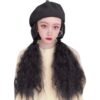 2-in-1 Women Wig Beret Cap Naturally Long Curly Wig Winter Autumn Warm Hat New,Black NO5112