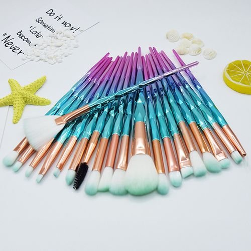 20 Pieces Brushes in SetsDiamond 20 gradient rose blue + green furSoft BristlesGood qualityDurable professional setConvenient And portable to carryProtecting Bag/Pouch to storing and assorting all brushes