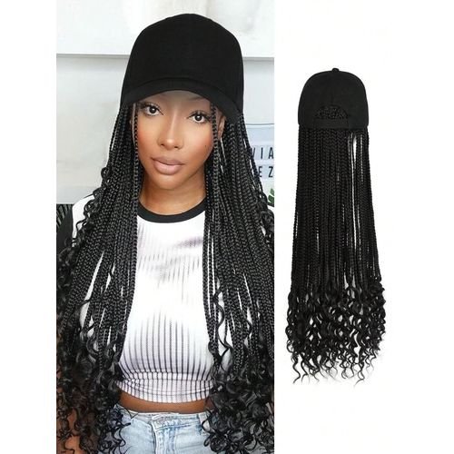 24-Inch Goddess Box Braids Synthetic Woven Baseball Cap Wig With 64pcs Bohemian Curly Ends Braided Hair Extensions, Suitable For Black And White Women