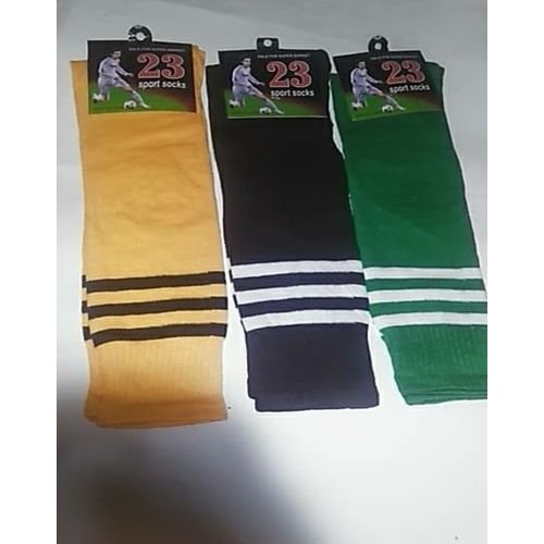 Product details3 Pairs – Long Sport + Exercise Socks or Camping Socks + 3 Free Face TowelThis 3 pair of various mixture of colour socks is good exercise socks that is good to put on during your daily, weekly or monthly exercise as the case may be.Comes with size 23-30 but major size is 23 as seen in the above image.?Will size grown up children from 13 upper and every adult no matter their sizeIt is also a sport exercise as it cover your legs proper while either playing football or involving in order sport games as it keeps you away from injuring yourself.It is good for camping as well as it covers your body away from cold and keeps you warm.These 3 pairs is made of pure cotton and Mixture of colourGood as a gift to a sport lover as they will always have multiple colour to match their track or sport wear.Foot ball group or clubs also need it as they will wear according to their club colour.Good for both adult and children as they will highly appreciate it.3 Pairs – Long Sport + Exercise Socks or Camping Socks + 3 Free Face TowelThis 3 pair of various mixture of colour socks is good exercise socks that is good to put on during your daily, weekly or monthly exercise as the case may be.Comes with size 23-30 but major size is 23 as seen in the above image.?Will size grown up children from 13 upper and every adult no matter their sizeIt is also a sport exercise as it cover your legs proper while either playing football or involving in order sport games as it keeps you away from injuring yourself.It is good for camping as well as it covers your body away from cold and keeps you warm.These 3 pairs is made of pure cotton and Mixture of colourGood as a gift to a sport lover as they will always have multiple colour to match their track or sport wear.Foot ball group or clubs also need it as they will wear according to their club colour.Good for both adult and children as they will highly appreciate it.