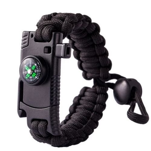 5 in 1 EMERGENCY SURVIVAL KIT – each bracelet consists of a fire flint starter, loud whistle, compass, knife and 12 feet of military-grade paracord5 in 1 EMERGENCY SURVIVAL KIT – each bracelet consists of a fire flint starter, loud whistle, compass, knife and 12 feet of military-grade paracordADJUSTABLE SIZE – this tactical first aid bracelet fits to wrists measuring 7??-9.5?? or 17-24cm (from kids and women to big men)MILITARY-GRADE PARACHUTE CORD – up to 10.5 feet (3.2m) of waterproof 7-core paracord can be used to create a shelter, trap, raft, stop bleeding, serve as tinder to start a fire, create a clothesline to dry your wet garments, splint your injured leg against a branch or carry heavy objects (up to 550lb or 250kg)BE PREPARED FOR COLD WEATHER – this fire starter kit is portable and ideal for outdoor adventures such as camping, hiking, hunting, fishing, boating. It can protect you from coldSUPERIOR SERVICE – we cut no corners in our product & will cut no corners in providing top-notch service to you