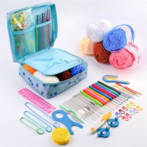 Product detailsAll-in-one Crochet Kit ? The amjudot crochet hooks set is 67pcs-in-one, including : 9pcs blunt needles crochet hooks + 8pcs Lace crochet hooks+5pcs wools+1pcs organizer Case+44pcs knitting & crochet supplies iools,which all is good for knitting & crochet lovers or beginners.?Rubber Handle Crochet Hooks ?The 9pcs rubber colorful handle crochet hooks are the size B(2.0mm),C(2.5mm), D(3.0mm), E(3.5)mm,G(4.0)mm,7(4.5mm),H(5.0)mm,I(5.5)mm,and J(6.0mm) and the rubber soft handle and ergonomic design is more comfortable and convenient while using it.Lace Crochet Hooks ? The 8pcs lace crochet hooks are in the size 0.6mm,0.75mm,0.90mm,1.00mm,1.10mm,1.25mm,1.50mm,1.75mm which covenient to you for making different beautiful decoration on your ideal gift.Crochet Organizer Bag ? Our crochet hooks bag is in size 23 x 19 x 8 cm/ 9*7*3inch,which have enoght space to organizer all the crochet tools and wools,which is more easy to use and stored,also with the storage bag you no need to worried about to lost some tiny tools like pins,needles,matkers,thimble,counter,pom-pom etc.?Knitting Wool Supplies ? On our crochet set there are 5pcs different colors wools ,which is good for you to making colorful wool gifts like shawls, skirts, coasters, dolls, blankets, pet clothes, hats, towel, gloves, pillowcases, etc.on Christmas, Thanksgiving Day, Mother’s Day, Birthday or many occasions.?Ideal DIY Gift Tool ? Our crochet set is for making shawls, skirts, coasters, dolls, blankets, pet clothes, hats, towel, gloves.Perfect for DIY ideal gift on the special days,like Christmas, Thanksgiving Day, Mother’s Day, Birthday or many occasions.