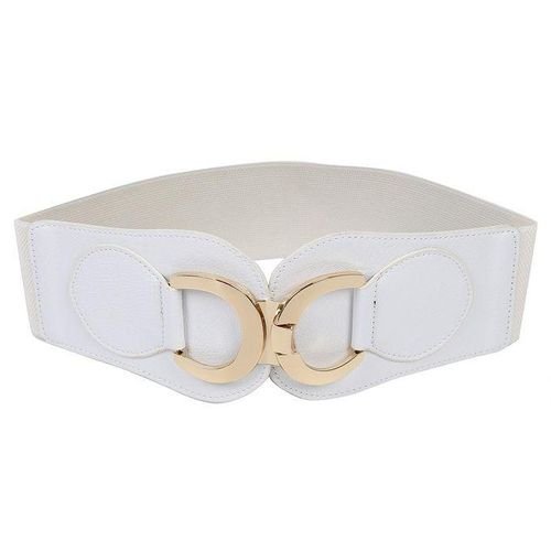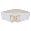 * SODIAL(R) Gold Tone Dual D Ring Buckle Off White Wide Elastic Belt For Women