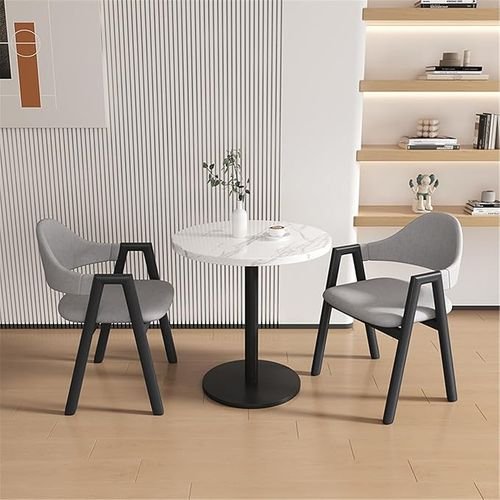 his kitchen table combines a rustic wood grain effect table-top with a matte black steel frame, adding a glamorous industrial look to your dining area.This mid-century style 2-piece round dining table set can brighten up any kind of kitchen or dining area. Besides, thanks to the compact size, it is suitable for small space.The 2 chairs feature curved back with ergonomic inclined angle, which fits your back better and allows you to lean back in a more comfortable way. The wide seat padded with high-density sponge can help relieve fatigue during long time sitting.Whether you need it for the dining room, living room, kitchen or caf?, this table set works like a charm. It’s up to you to decide where to put it!This dining table set comes with easy-to-understand instructions and complete accessories for you to put together in a short time. Additionally, the smooth surface is easy to wipe clean.