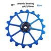 Support 7-12 speed and 4/5/6mm spindle shaft rollers.Specification:Material: Ceramic and Aluminium alloyPulley Wheel Size(Diameter): approx. 72mm/2.83 inchPackage Includes:1 Piece Bike Rear Jockey Wheel2 Pieces Spindle Size Reducing Bushing (4m&5m)