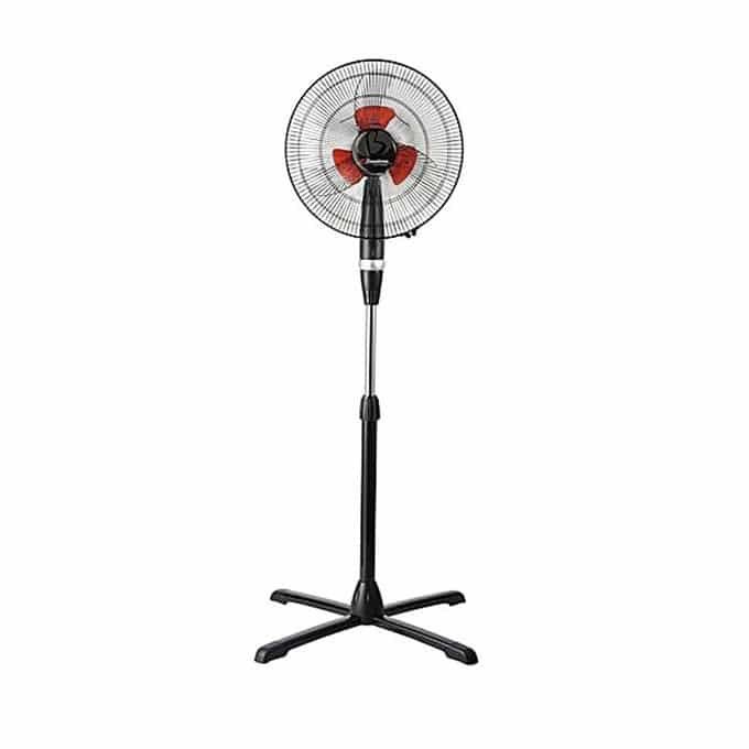 This sand fan runs at 70W power supply. It comes with 3 speed selector switches. It can swivel and its height can be adjusted up to 1.5 m and its actual height is 1.75m. It has 128 ribs for the simple purpose of safely. This blades used in this model are dual for higher efficiency. Even though this silent yet breezy beauty has enough to satisfy any domestic use, it is still extremely stylish. It boasts a mostly black body with a speed switch which emits LED light.