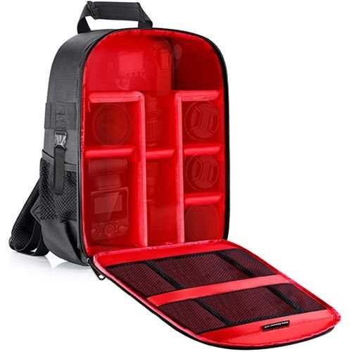MULTI-USE: Offers versatile storage compartments that allow you to fit your camera, accessories, and other personal belongings in one safe and convenient placeGREAT CAPACITY: It can hold a DSLR camera(, Nikon, Sony, Olympus, Pentax, and other DSLRs) with a standard zoom lens, GoPro camera systems, professional shoe-mount flash units, radio triggers, mirrorless cameras and lenses, batteries, and chargers, cables and other accessoriesUPGRADE FEATURES: Tripod/Monopod foot holder with straps and two buckles on both sides to securely hold your tripods, monopods orPADDED CUSTOMIZABLE DIVIDERS: The fastening taped cushions inside the bag are removable and adjustable. It could be constructed into 6 small partitions, each of which could house photographic equipment safelyDURABLE MATERIAL: Durable waterproof polyester/nylon exterior (Black); ample interior storage (Red); Durable zippers ensure safety; Exterior pocket and interior mesh compartment fit smaller accessories