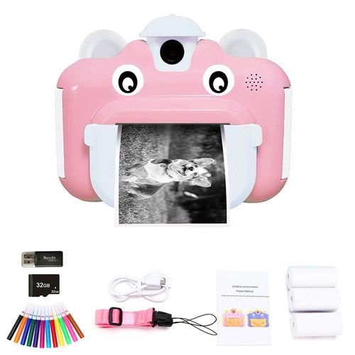 About this item?One on Instant Print Camera? This toddler camera adopts thermal printer technology, just pre the on then you can get a black-and- printed picture in seconds. Upgraded 180? rorating cameras design allows children to take pictures or selfie, very simple to operate.?2.4 Inch Screen & Safe Material? Kids digital camera with 2.4 inch eye protection screen which can avoid harming your child’s eyes. Larger viewing and more realistic colors for a better picture. Toddler camera made of envment-friendly and non-toxic material, durable and safety. kids video camera comes with a s, children can carry it everywhere.?Multifunctional Toddler Camera? The Camera for Kids looks like a toy, but its Capabilities are versatile and easy to operate! Features Include 5 Color Filters & 19 Cartoon Photo Frames, Built-In Microphone, 180? Rorating Len, HD LCD Display, Photo Playback, Selfie, 2 or 5 Seconds Timer Shooting & MicroSD Support Up to 32GB.?Perfect DIY Gift For Cultivating Creativity? Kids instant camera suitable for little kids at age 3-14 years old girls and boys holiday/Christmas/birthday gift. The printed black and photos can be used for DIY by children. Stimulate their imagination and creativity. Instant camera not only record photos at birthday parties or Christmas, but also supports video recording.?Quick Ar-Sale Service & Packages Contents? We provide free lifetime customer service, so if you have any questions, please feel free to contact us and we will be happy to help. Package included 1 x Kids’ Instant Camera, 1 x USB Charging Cable, 3 x Print Paper Roll, 1 x Neckyard, 1 x Product Box, 1 x User Manual.Kids Camera Instant PrintKids Camera Instant Print Digital Camera for Girls — Great Birthday / Christmas / Happy New Year Gifts for Children1. Photo/Video Modes Switch: Click to switch take photos or videos.2. Delete: Delete the photos or videos.3. Return: Return to Function Choose Modes.4. Camera On/Off & Main Menu: Long pre 3-5 seconds and will turn off the camera. Can also serve as the return key.5. Shutter on & Verify: Click to take a photo or video. Delete the photos for the confirmation key.6. Up & Zoom In: Turn over the directory and photos and choose big head paste. Can also adjust the zoom to 4X.7. Left & Photo Sticker Modes: Bring up the big head paste or filter.8. Right & Photo Album: Bring up the photos or videos for review or print.9. Down & Zoom Out: Turn over the directory and photos and choose big head paste. Can also adjust the zoom return from 4X to normal.10. Print On/Off Switch: On will print automatically once take a photo. Off will just take a photo and store to Alfor choose to print or not.11. LCD Monitor: 2.4 Inch IPS Screen. Safe material to kids’ eyes.12. Print Paper Door: Install the print paper for print.13. Memory Card Socket: Memory capacity can be expanded freely. Maximum support 32GB CardAbout shipping