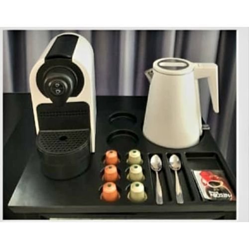 Dunhood electric kettle and espresso? coffee machine.Features.This is a?High speed Kettle and coffee machine?It has a Seamless interiorIt is Safe to clean.Professional Refresh Tray?Ergonomic grip handle to avoid spillage?Coffee machine compartmentKettle compartmentIt has a compartment for espresso capsules.Coffee outlet?It has a volume for espresso and lungo coffeeSpoon and coffee compartmentHigh heat safety to avoid burning of hands?2200 wattsStainless steel hidden resistanceCable housing2 step lid opening?Espresso coffee button,Adjustable cup support and drip trayWater tank 0.7LIt includes Capsule loading cover,Lungo coffee buttonLoading and ejecting capsule handle.The appliance is supplied with a 3 pin plug and lead.The spout filter slides out for ease of cleaning.Used capsule container and drip tray?One touch control systemIt is Stress-free?The appliance is good for home , office , shop and other working environments.