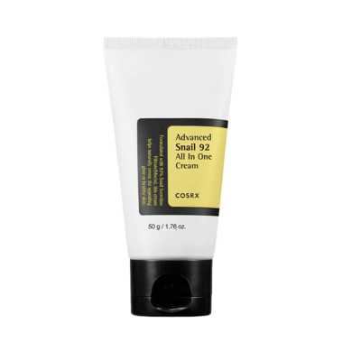 COSRX Advanced Snail 92 All In One Cream is a face cream that includes 92% snail mucin. It boosts the natural renewing process of the skin and helps to fade skin damage such as acne scarring, fine lines and pigment changes.