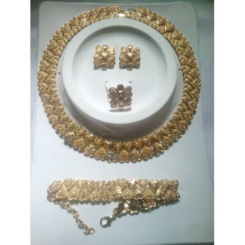 This gorgeous statement necklace for ladies and women. It comes in 4 piece that will bring out the uniqueness of your outfit, we got you covered anytime any day.??Material:???Dubai Crystal,???Gold?Filled Color? as?picture??Necklace?length:?about 42cm????Bracelet?length:?about 6cm????The?ring?diameter:?Adjustable????Quantity:?1?Set?(Neckace+Bracelet+Earrings+Ring )????Condition:?100%?Brand?New