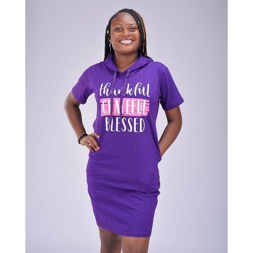 A nice simple dress with beautiful?Thankful Grateful Blessed print for the fashionable lady. it is made with smooth quality purple cotton material.