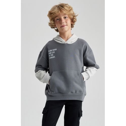 Defacto Boy Casual Oversize Fit Hooded Long Sleeve Knitted Sweat Shirt - Grey