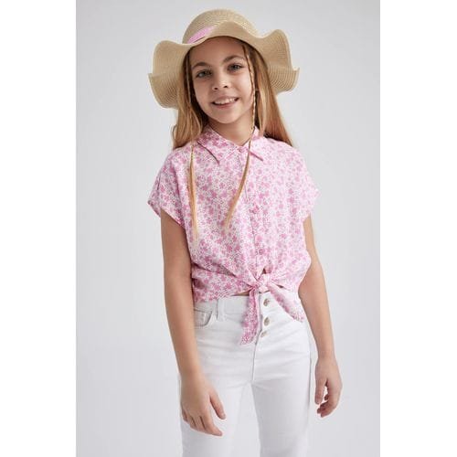 Defacto Girl Casual Cropped Fit Basic Woven Short Sleeve Shirt - Pink