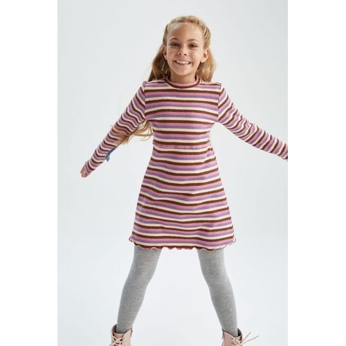 Defacto Girl Casual Long Sleeve Knitted Dress - Purple