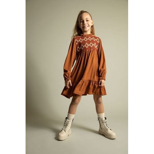 Defacto Girl Casual Long Sleeve Woven Dress - Brown
