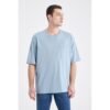 Defacto Man – Crew Neck Short Sleeve Oversize Fit Knitted T-Shirt-Blue 4,050.00