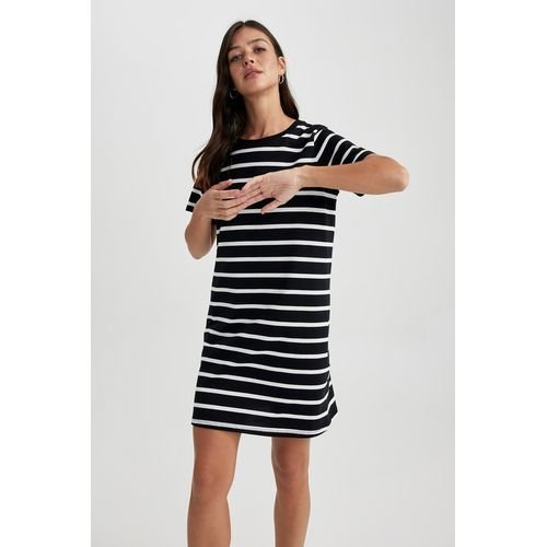Defacto Woman Young C Neck Short Sleeve Knitted Dress - Black