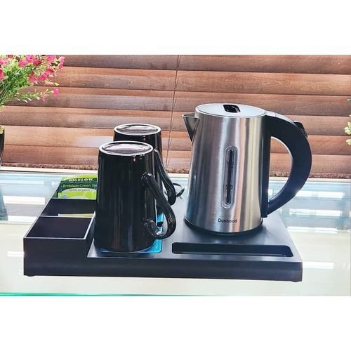 The set of kettle has the following features.Modern style KettleIt has a Professional Refresh TrayIt includes Mug cups either black or white,A has a compartment for Sugar and tea .It is Easy to use and cleanIt has Seamless interior safetyIt has Stainless steel interiorIt contain a Sugar boxIt is Energy saving,It boils water rapidly?2200 wattsCordless kettle1.2 litres capacity reservoirThe Kettle partition is there to protect the kettle from fallingCup compartmentA sizeable Spoon compartmentCable winding slot333*380*45mmCable housingDetachable and easy to clean filterOne touch control system ,It automatically switch off once it get to boiling point.Good for offices, shops, hotels and other working environments.Stress-free .The appliance is supplied with a 3 pin plug and lead.It is easy to handle to avoid spillage of hot water.The spout filter slides out for ease of cleaning