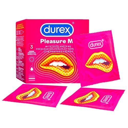 Durex Pleasure Me?condoms have a distinct texture combination, giving you something extra for enhanced sensuality. These transparent condoms have stimulating dots and ribs for extra simulation. These ribs are placed strategically at the bottom of the condom to create clitoral stimulation and more pleasure for both partners