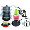 This is an Economy kitchen set bundle for beginers. It comprises of little bits and pieces of very essential kitchen tools.You just rented and apartment and don’t have much in your bank account, this bundle is for you. You are a Youth Corper and just started serving, this bundle is for you. You just started a new family, this bundle is for you. You are a student, this bundle is for you.You just relocated to a new town, this bundle is for you. You just got transfeered , this bundle is for you. You are a bachelor or spinster, this bundle is for you. You want to gift that newly wed a wedding gift, do not miss this.Very affordable and durable.Bundle set comprises of:Economy Kitchen Bundle- include4 Set Of Non Stick Pots1 Whistling Kettle1 Butcher Knife1 Non-stick Frying Pan?1 Set Of Non Stick SpoonDeep FryerMini Eletric Cooking Machine.