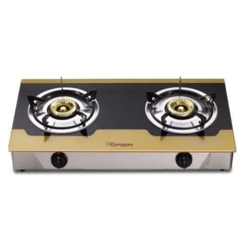 Strengthened tinted glass top & front panelStrong casing with sleek designStrong burners with auto ignitionType of gas: L.P.GPressure: 2800-3000PaHeat input:left burner(3.8kW);right burner(3.4kW);Appliance category : class Stainless steel burner holder, long time useCopper capElectroplated gold color burner capDouble tube burnersLuxury high tempered gold color glassPressure 2800~3000PaTotal heat flow:7.0KWSize(HxWxD):11.8×71.5x37cmModel NO:QGC-2BG kinThis stylish 2-Burner Table Top Gas Cooker from popular household brand Haier Thermocool is a must have for every home with its stylish design. It features a unique glass surface, extra strong pan rest and anti-rust treated pan. It is economical as it?s burners are designed to consume little gas while producing strong blue flames that make cooking pure joy.?It will add a touch of beauty to your kitchen.?Unique glass surface?Double gas burnerPremium cast burnerExtra strong pan restSuperior valve regulatorAnti-rust treated panEconomical burner designStylishly designedGas pressure: 2800 PA