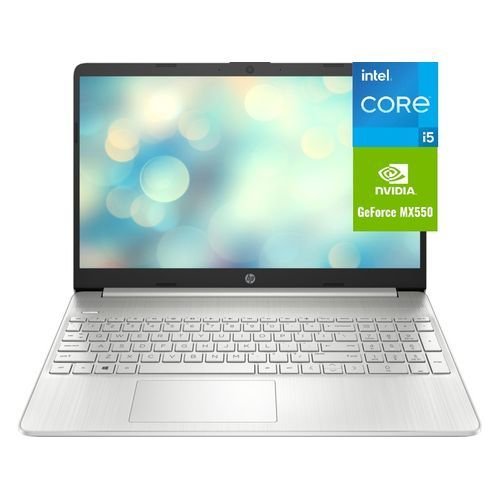 Product detailsHP Laptop 15 Notebook with Nvidia Graphics?Stay productive and entertained from anywhere with long-lasting battery life and micro-edge display.A dynamic processor that adapts to you for superior multi-tasking performance. 12th Gen Intel? Core? processors distributes performance where you need it the most ? saving you time and increasing your ability to do the things you actually want.Thin and light with a micro-edge displaySuper-portable with a lightweight design and a more comfortable view on?flicker-free?4, micro-edge display.Reliable performance for every dayPerform daily tasks with ease thanks to your laptop’s Intel? Core??Processor?1?and abundant storage.Stay connected with a long battery lifeThe long battery?life?3?and HP Fast?Charge?5?technology let you work, watch, and stay connected all day.A dynamic processor that adapts to you for superior multi-tasking performance12th Gen Intel? Core? processors distributes performance where you need it the most ? saving you time and increasing your ability to do the things you actually want.Flicker-freeUsing DC Dimming technology that controls brightness by adjusting direct current rather than cycling the backlight, we can eliminate screen flickering for more comfortable viewing.Full HD displaySit back and enjoy crystal-clear visuals and images with the vibrant quality of 2 million pixels. The 1920 x 1080 resolution gives all your digital content a new dimension.TECHNICAL SPECIFICATION?PROCESSOR: 12th Generation, Intel? Core? i5-1235U (up to 4.4 GHz with Intel? Turbo Boost Technology, 12 MB L3 cache, 10 cores, 12?threads)MEMORY:8 GB DDR4-3200 MHz RAM (2 x 4 GB)STORAGE: 512 GB PCIe? NVMe? M.2 SSDDISPLAY: 39.6 cm (15.6″) diagonal, FHD (1920 x 1080), micro-edge, touchscreen anti-glare, 250 nits, 45%?NTSCKEYBOARD: Full-size, natural silver keyboard with numeric keypadGRAPHICS: NVIDIA Gforce Mx550 (2GB Dedicated)?CAMERA: HP True Vision 720p HD camera with temporal noise reduction and integrated dual array digital microphonesPORTS: 1 USB Type-C? 5Gbps signaling rate (supports data transfer only and does not support charging or external monitors); 2 USB Type-A 5Gbps signaling rate; 1 AC smart pin; 1 HDMI 1.4b; 1 headphone/microphone comboPOWER SUPPLY TYPE: 45 W Smart AC power adapterOPERATING SYSTEM: Windows 11