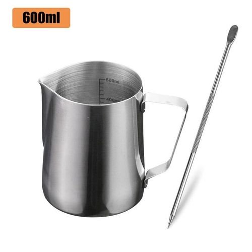 Product detailsFeature:*1. It is made of stainle steel, anti-rust, anti-fouling, anti-collision, ble and easy to clean.*2. The built-in scale can control the volume of milk or cream required for each cup of coffee to the greatest extent.*3. The smooth round mouth improves the operability and es the garland patterns more abundant.*4. The milk frothing cup is perfect for frothing milk for lattes, chocolate and coffee.*5. It is convenient. Ideal to use with coffee machines with attached milk frother.Specification:Material: Stainle steelColor: picture color (as shown in the picture)Size: 350ml-9.3*7.7cm, caliber 6.5cm, bottom diameter 7.5cm, 600ml-11.1*9.1cm, caliber 7.7cm, bottom diameter 9cmCapacity: 350ml, 600mlWeight: about 150g/220gPackage Contents:Latte Art Cup * 1Latte Art * 1Note:1. All pictures are profeionally color-coded, but due to the difference in ambient light and display device settings, there may be some deviations between the pictures you see and the it thelves. Please understand that.2. The data is manually measured, there may be some deviations, but it does not affect the use.