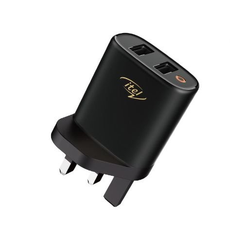 itel 2 USB Port, 2A Faster Charger With Free Fast Cable - Black
