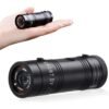 Portable?Video Recorder: Dimension(3.5*1.1*1.1?), Weight(79g). This tiny spy camera is lightweight. With a micro sd card, this small hidden camera can record?1080P?video day and night. Then you can use?USB?cable connect camera to your computer to playback. Please note: the sd card is not included, you can buy a?8-128G?class 10 micro sd card(TF?card).4 Hours Working Time: The built-in?1000mAh?battery can support to record video for 4 hours, and it is IPX6-level?waterproof. So it is not only a home camera, but also suitable to use?outdoor?as a action camera or sports camera.Useful Accessories for Sports: You can install the camera on your bicycle handlebar, helmet or backpack. This sports camera is really convenient to take phone or record?video?outdoor. And you also can use power-bank or charge it on your car.Easy Use: This is the easiest video camera to operation. You can?switch?to take video or photo with the related buttons. And without any app or wifi. The only thing you need to you is insert sd card in the camera to start to video, and playback on your computer.Multifunctional?Camera?Although this camera has small body, it has powerful functions. You can use it for spy camera, hidden camera, dash cam, action camera, nanny cam, home camera.