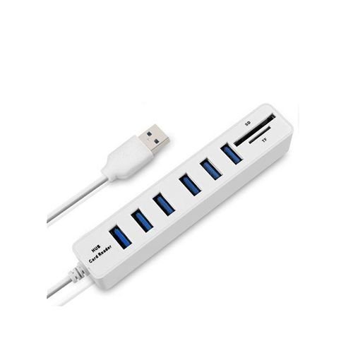 Multi USB 2.0 Hub USB Splitter High Speed 6 Ports With TF SD Card Reader(White) 12,000.00 Save:11,000.00(48%)