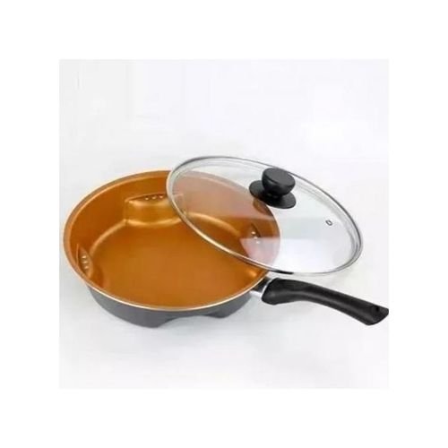 NON STICKY AIR FRY Pan fries without oil or?any other source of fat. Non sticky air stir fry trilogy is an innovative, multi-purpose healthy, dry cooker, with which you can fry for the whole family without oil and it distributes heat evenly. It has three heat towers for increased heat exchange on the edge of the pan that allow the air to circulate inside the pan and dry cook the food.?