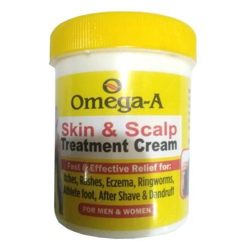 Product detailsOmega-A Skin& Scalp Treatment Cream is an aqueous cream specially formulated with a rich blend of essential ingredients for keeping your skin and scalp healthy and attractive. This unique medicated formula containing Sulphur, Menthol, Methyl salicylate and camphor, helps to control itching and flaking caused by Dandruff, and other skin and scalp conditions such as eczema, acne (pimples), ringworms, etc. It also aids in managing the symptoms of psoriasis and seborrheic dermatitis.