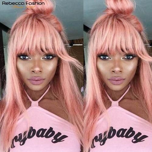 Pink Wigs Straight Wigs With Bangs Brazilian Remy Ginger Pink Straight Wigss Pre Plucked For Women Rebecca Straight Hair