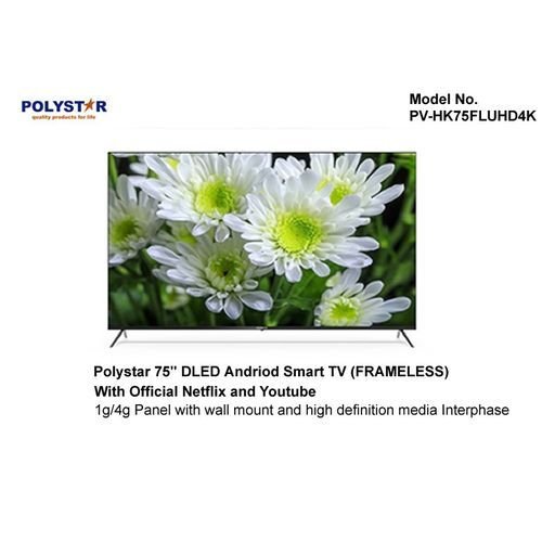 Get the best of Polystar 75inch UHD smart LED TV price on Allneeds that comes with amazing features, astounding and capable of giving you the ultimate entertainment. Enjoy it?s luminous clarity that eliminates blur and artifacts which gives you fast motion picture quality for you to enjoy your favorite programme.?It adds a lovely d?cor to your living or private room through its viewing angle and comes in a ground breaking design that will dazzle you.?The resolution which is so sharp that you will see details and colours like never before as it offers you pictures and images that is fascinating and relaxing.?It has a high sensitive tuner. The TV comes in black colour that adds d?cor to your living room with the smart LED flat panel display that arrests your attention to stay glue to the screen.The Polystar 75 SMART UHD LED TV on Allneeds gives you the freedom to watch your favorite drama, action, romance, sports, news and high speed action movies in comfortably on a cozy sofa with remote in your hands. It has an ultra-brilliant LED and high transmission that comes with HDMI terminal for you to connect your compatible devices and DVD player with home theater.?? Relax and watch how pictures and images come alive in colourful resolution and enjoy the smart TV’s cutting??edge technology for you to stay connected