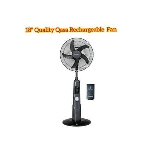 QASA 18 inches Standing Rechargeable Fan is an innovative product that creates airflow?in your homes and offices. It is an essential appliance for every home and offices as it consists of 18 inch oscillating 5 speed fan blades that rotates to give you cool relief during hot season. It features built in power cord with plug rechargeable battery that operates with electricity while charging itself at the same time. The knob button gives you the authority to be in control of the speed level and the rechargeable sealed lead acid battery last long for you to feel relaxed with fresh air all day long.QASA 18 inch standing rechargeable fan is an innovative product that creates airflow in your homes and offices. It is an essential appliance for every home and offices as it consists of 18 inch oscillating 5 speed fan blades that rotates to give you cool relief during hot season. It features built in power cord with plug rechargeable battery that operates with electricity while charging itself at the same time. The knob button gives you the authority to be in control of the speed level and the rechargeable sealed lead acid battery last long for you to feel relaxed with fresh air all day long.QASA 18 inch standing rechargeable fan is an innovative product that creates airflow in your homes and offices. It is an essential appliance for every home and offices as it consists of 18 inch oscillating 5 speed fan blades that rotates to give you cool relief during hot season. It features built in power cord with plug rechargeable battery that operates with electricity while charging itself at the same time. The knob button gives you the authority to be in control of the speed level and the rechargeable sealed lead acid battery last long for you to feel relaxed with fresh air all day long.