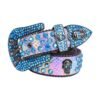 (Royal Blue)Head Skull Buckle Belts Women Pu-leather Strap Rhinestone Buckle Belts Western Cow OLN