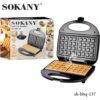 The Sokany 3 in 1 Snack Maker is a highly multi-functional appliance, offering the choice of three cooking techniques to make your choice of snacks as varied and convenient as possible.The?sandwich press plates?make toasted sandwiches a breeze, simply put your choice of sliced bread and filling inside the moulds and lock the lid in place. The snack maker will cut, seal and toast your sandwich in minutes, making perfect toasties every time!The?grill plates?are the most versatile of the accessories included with the snack maker. You can use them to press larger sandwiches like paninis or foccacias; or even to grill meats and vegetables like steaks, burgers, tomatoes or peppers.If you want to indulge your sweet tooth, the snack maker is perfect for that too! With its?Waffle Iron plates?you can make delicious Belgian style waffles extremely quickly. It’s as simple as pouring your mixture into the moulds and closing the lid! You can then create your waffles with your favourite toppings!All three interchangeable cooking plates are coated with a non-stick coating, so cleaning is as simple as the cooking. Simply wipe clean with hot water.
